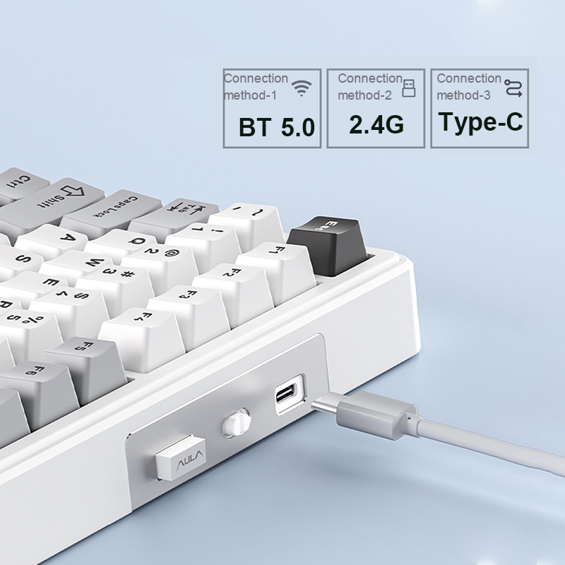 3 つの接続モードをサポートします: BT 5.0ワイヤレス 2.4GType-C 有線。シームレスに切り替えて、信頼性の高いゲームや仕事の体験を実現します。